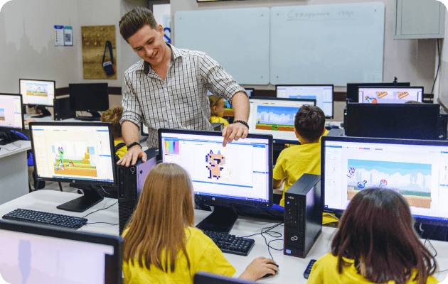 Biz texnologiya sanoatining kelajakdagi yetakchilarini yaratadigan joy. Dastur bolalar uchun maxsus ishlab chiqilgan 7 -14 yosh.