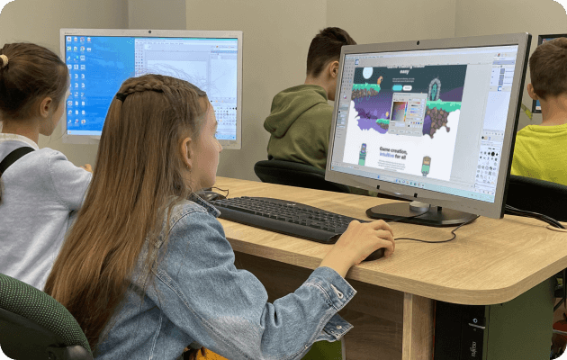 Bolalar o'zlarini o'yin dizaynerlari sifatida sinab ko'rishadi, o'z o'yinlarini dasturlashadi va yaratadilar.